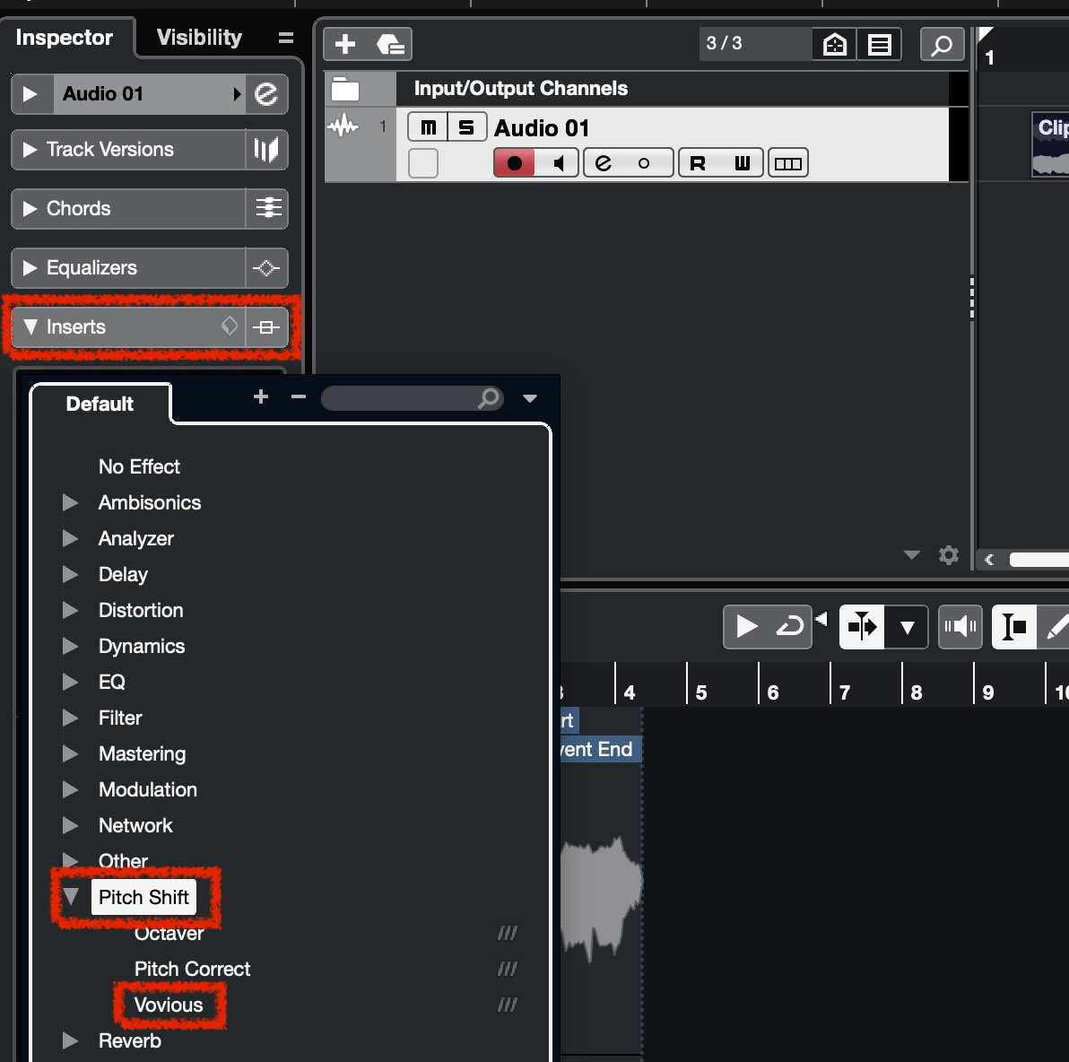 Vovious works best on clean vocal recordings with no echo, reverb or other effects before Vovious. For best sound results, it is highly recommended to put Vovious in the first effect slot before other effects.
