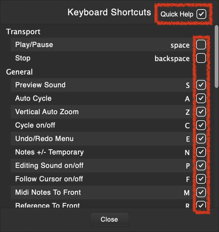 ...and activate QuickHelp in the Keyboard Shortcuts dialog. You can select which shortcuts are displayed in the QuickHelp overlay. However, less is sometimes more when it comes to maintaining an overview.