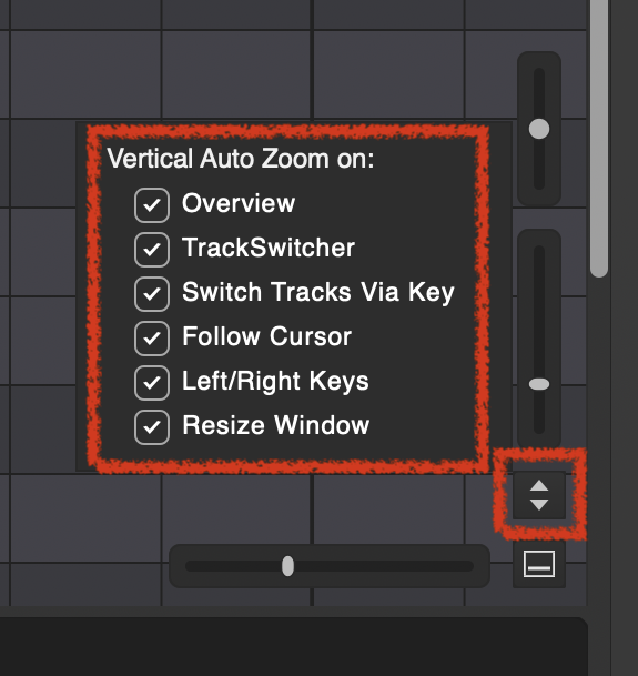 By holding down the left mouse button or right-clicking on the Vertical Auto Zoom button, you can select from a menu which actions will automatically trigger the Vertical Auto Zoom: