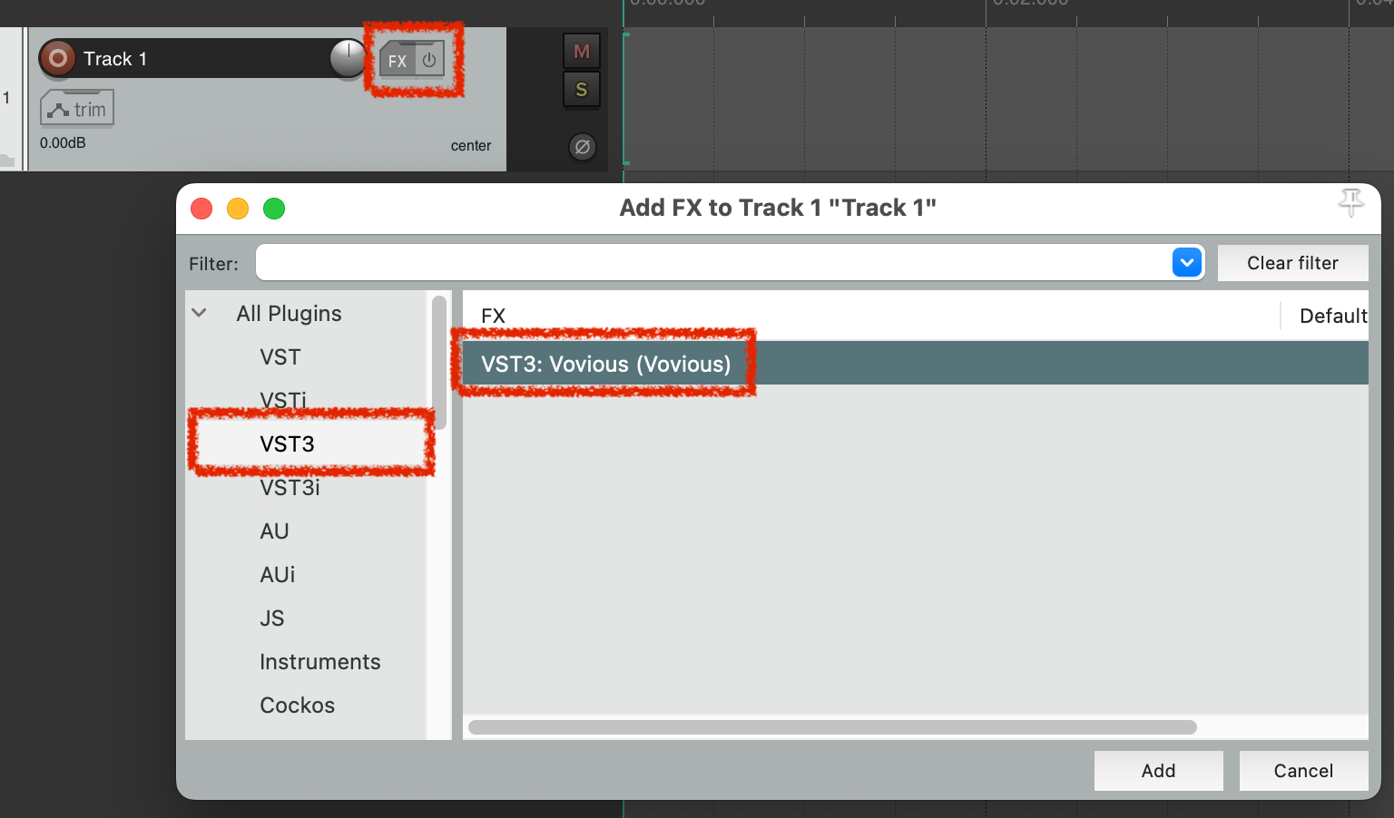 To use Vovious with ARA, you have to put it in the first effect slot. The audio material is automatically transferred to Vovious and you can start editing.