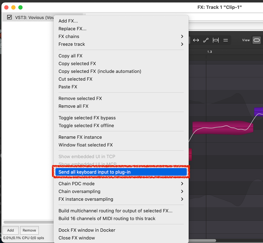This is recommended so that all keyboard shortcuts arrive at Vovious when the plugin window is in the foreground, otherwise the keyboard shortcuts will be redirected to Reaper, which may lead to unwanted behavior (for example, you press the "Undo" shortcut...)